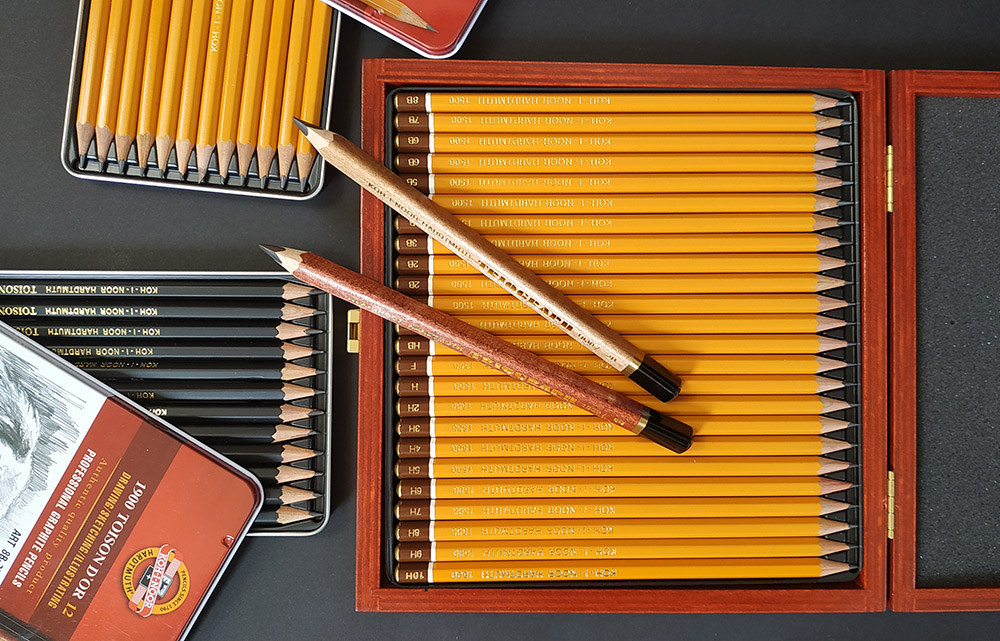 Zacznijmy może więc od zestawów prostych i uniwersalnych jak ołówki. Tutaj możemy zaproponować piękny zestaw w drewnianej kasetce, który liczy 24 ołówki z serii 1500. To jedne z najbardziej znanych i najczęściej używanych ołówków w rysunku artystycznym. Aczkolwiek zestaw ten przewiduje również gradacje twarde, które idealnie sprawdzą się do rysunku technicznego.